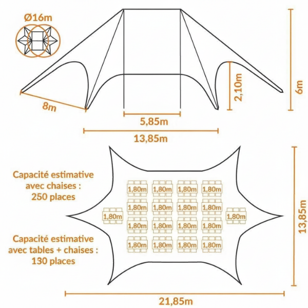 – Hauteur centrale : 6m